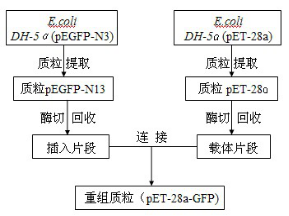 BL-21為本實驗室收藏菌種,質粒 pET-28a 和 pEGFP-N3,引物,限制性內切酶 Bam H1、 Not Ⅰ購自大連寶生物工程有限公司。